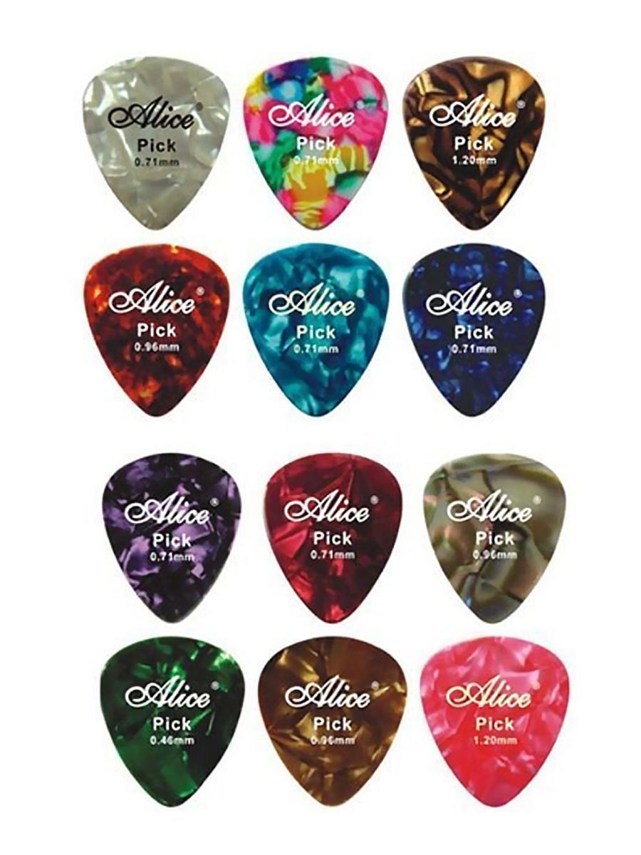Alice AP-100A Медиаторы, целлулоид, разноцветные, толщина 0,46-0,81, набор из 100шт