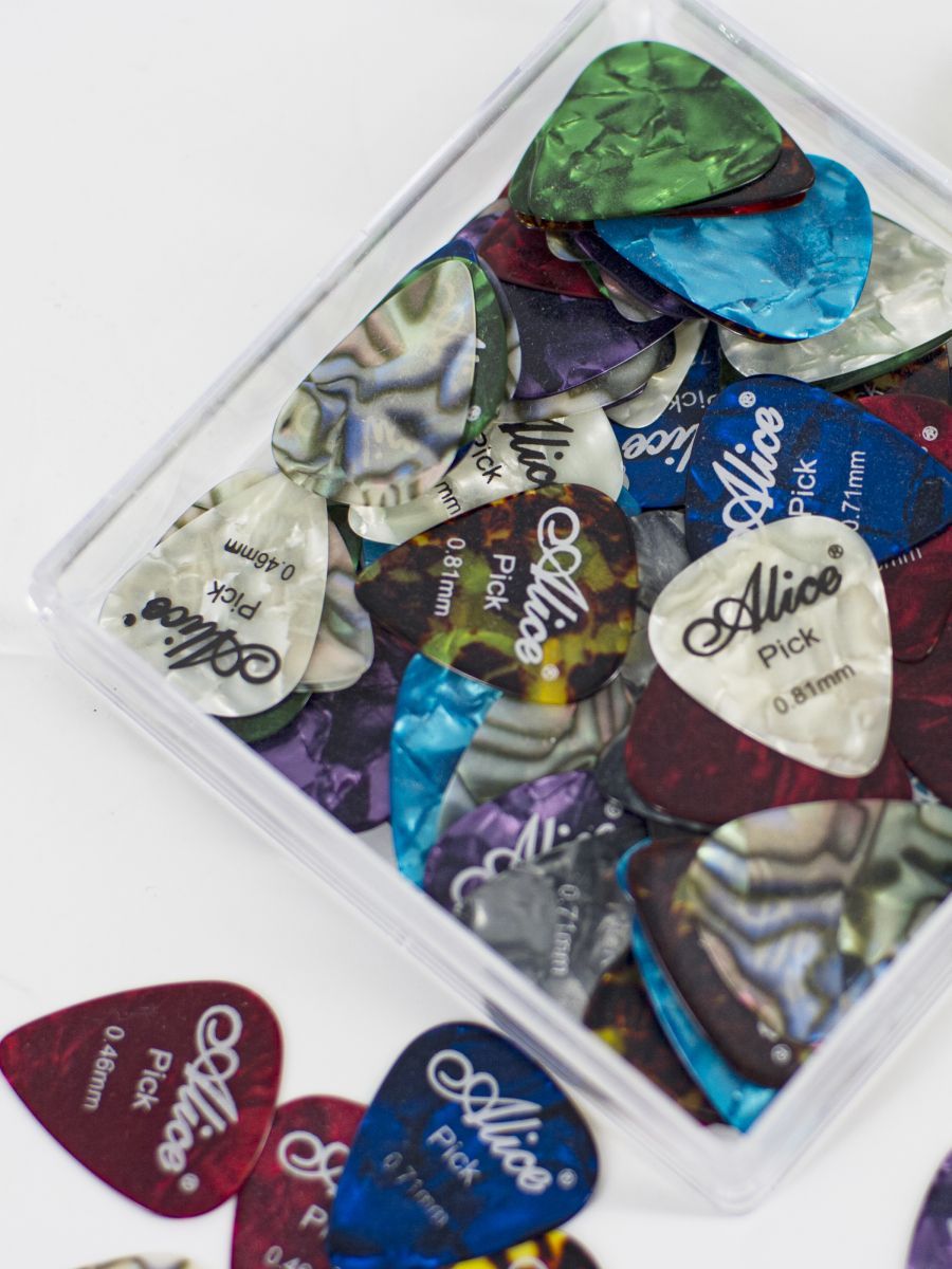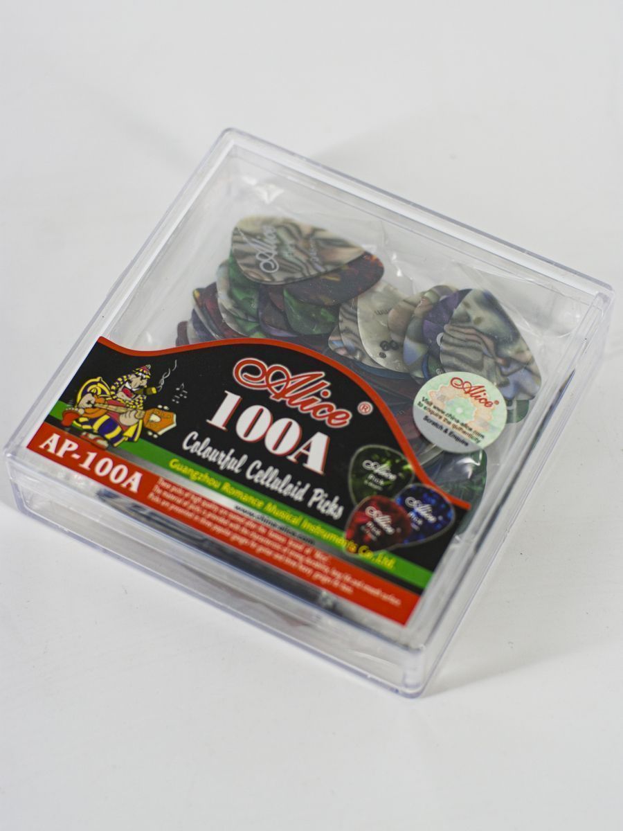 Alice AP-100A - профессиональный набор медиаторов премиум-класса, созданный для музыкантов, ценящих качество и разнообразие в игре. Комплект включает 100 медиаторов различных толщин и расцветок, что делает его идеальным выбором как для начинающих, так и для опытных гитаристов.