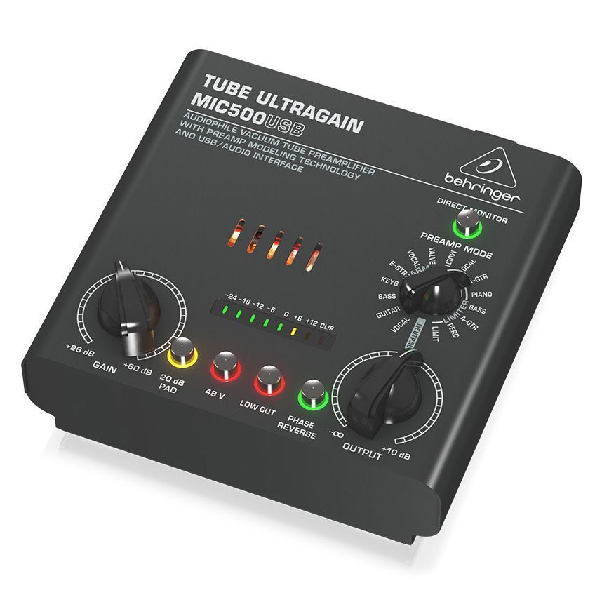 Behringer MIC500USB Ламповый предусилитель, USB-аудио интерфейс 2x2, инстр. вход, функция моделирования, выход на наушники