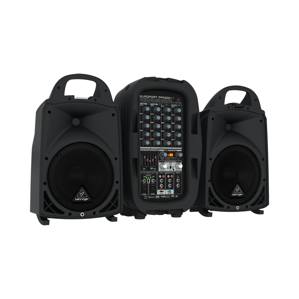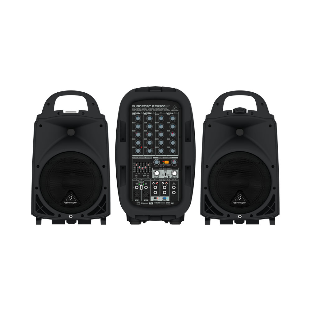 Behringer PPA500BT Система звукоусиления портативная 500 Вт, 6 каналов, процессор эффектов Klark Technik, FBQ, XM1800S в комплекте, динамики 1*1,35", 1*8", Bluetooth, порт для подключения беспроводного микрофона.