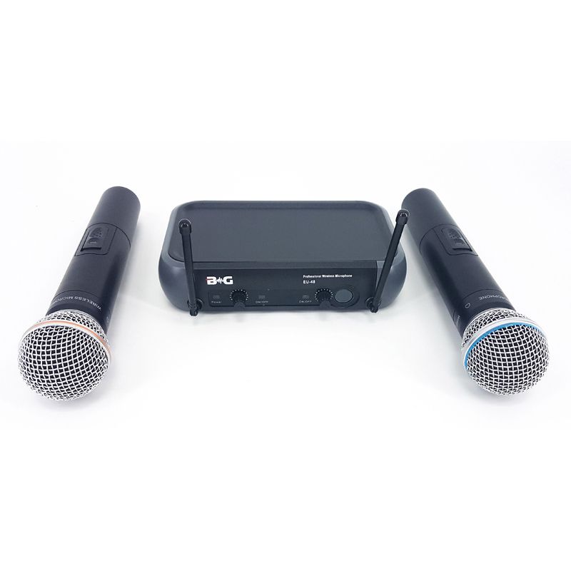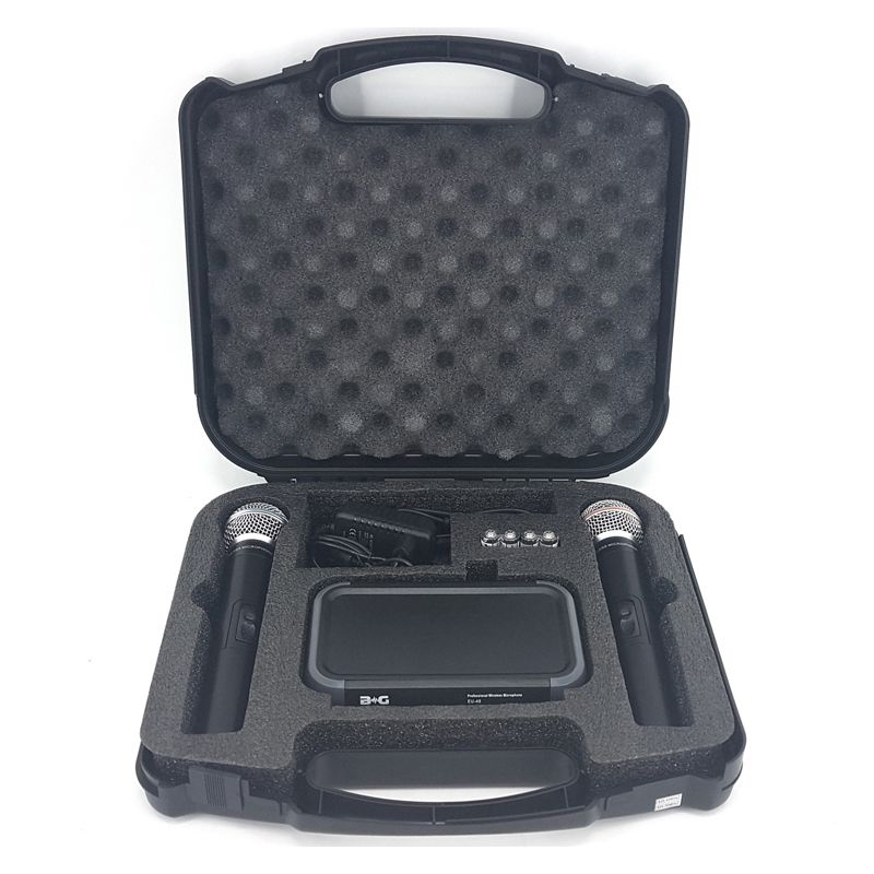 BG EU-48A – это качественная и доступная по цене вокальная радиосистема с двумя ручными микрофонами. Комплектация: 1. Приемник 2. Два ручных микрофона Приемник: – индикатор переключателя ON/OFF – регулятор громкости – RF-индикатор – переключатель ON/OFF – антенна приемника – разъем кабеля питания – балансный выходной разъем – выходной аудиоразъем – регулятор шумоподавителя Микрофон: – капсюль – индикатор низкого заряда – переключатель питания – отсек для элементов питания Модель выполнена в компактном и прочном корпусе. Микрофоны имеют качественное шумоподавление и четко передают звучание голоса. Радиосистема сочетает в себе звук профессионального качества с простой настройкой и понятным интерфейсом. Вокальная радиосистема BG EU-48A станет прекрасным вариантом как для вокалистов, так и для артистов разговорного жанра.