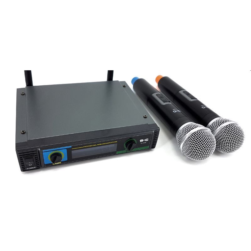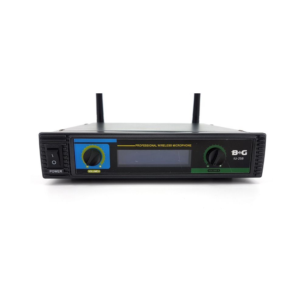 BG IU-258 Радиосистема вокальная, UHF 600-870MHz, фиксированная частота, Led дисплей, 2 ручных микрофона
