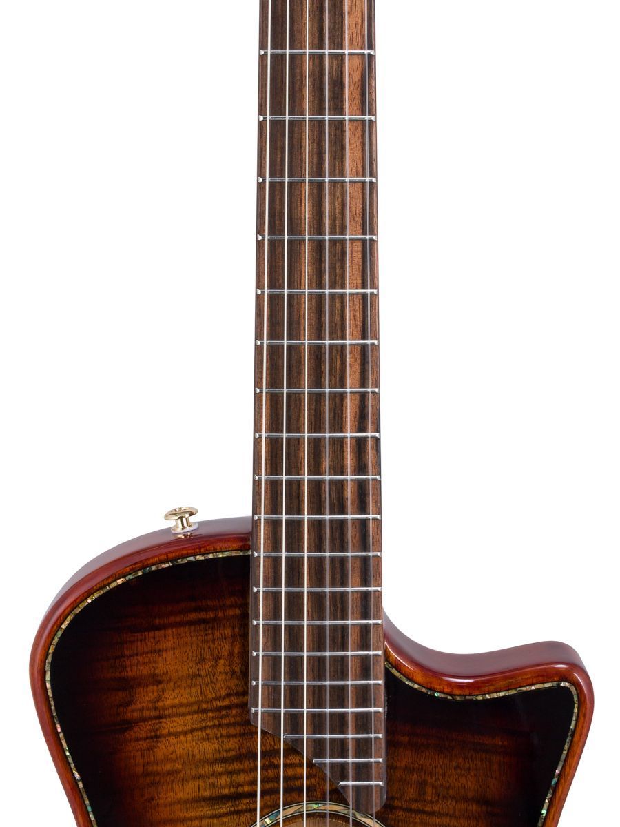 Серия: Fusion Craft Форма корпуса: Hollow Body with Cutaway Мензура: 650 мм (25 19/32”) Ширина грифа на нулевом ладу: 48 мм (1 57/64”) Ширина порожка: 45 мм (1 49/64") Корпус: махагони Верхняя дека: ель с шпоном из огненного окуме класса 5A Гриф / накладка грифа: махагони / макассарский эбен Анкерный стержень: двухсторонний Лого на голове: гора Бромо, перламутр Оформление резонаторного отверстия: «Ковбойская веревка» Бридж: "Орлиное крыло", черное дерево Amara Лады: 22 Верхний и нижний порожки: кость Колки: винтажные "Mt. Bromo", позолоченные Электроника: пьезодатчик + 3-позиционный звукосниматель под струнодержателем Отделка: глянцевый лак Цвет: 3 Tone Sunburst В комплекте: утепленный жесткий кейс