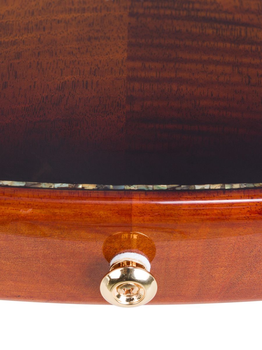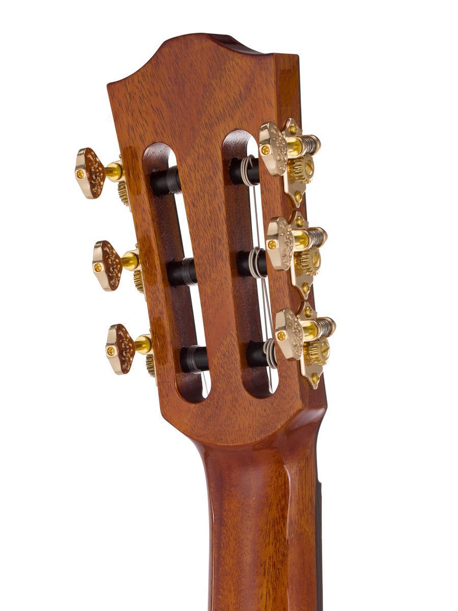 Bromo BEN2C3TS — полуакустическая гитара для музыкантов, ценящих универсальность, глубину звучания и премиальное качество. Модель сочетает традиции классического гитарного мастерства с современными технологиями звукоусиления. Корпус из махагони обеспечивает тёплый, насыщенный тон. Древесина известна стабильностью и долговечностью. Верхняя дека из массива ситхинской ели, облицованная слоем высококачественного огненного окуме класса 5A, не только обеспечивает чистый, выразительный тон, но и излучает экзотическую красоту, обогащенную потрясающе глубокой, волнистой текстурой древесины. Гриф из махагони с двухсторонним анкерным стержнем гарантирует стабильность геометрии грифа при перепадах влажности и температуры. Анкер позволяет точно регулировать профиль грифа для комфортной игры. Нейлоновые струны создают мягкий, бархатистый звук, характерный для классической гитары, снижают нагрузку на гриф и удобны для пальцевой техники. Винтажные колки «Mt. Bromo» обеспечивают плавность хода, высокую точность настройки и стабильность строя, позолоченное покрытие защищает от коррозии и придаёт инструменту элегантный вид. Гибридная электронная система (пьезодатчик + 3‑позиционный звукосниматель) позволяет передавать чистый акустический звук через пьезодатчик, выбирать оптимальный тембр с помощью 3‑позиционного переключателя, уверенно выступать на сцене и записывать в студии с минимальными искажениями. Глянцевое покрытие подчёркивает текстуру древесины, защищает инструмент от внешних воздействий и придаёт роскошный внешний вид. Утеплённый жёсткий кейс обеспечивает надёжную защиту от ударов, перепадов температуры и влажности при транспортировке и хранении. Bromo BEN2C3TS — это гармоничный сплав традиций и инноваций. Богатое звучание, надёжная конструкция, стильная внешность и удобная электроника делают эту гитару идеальным спутником для творчества на любом уровне.