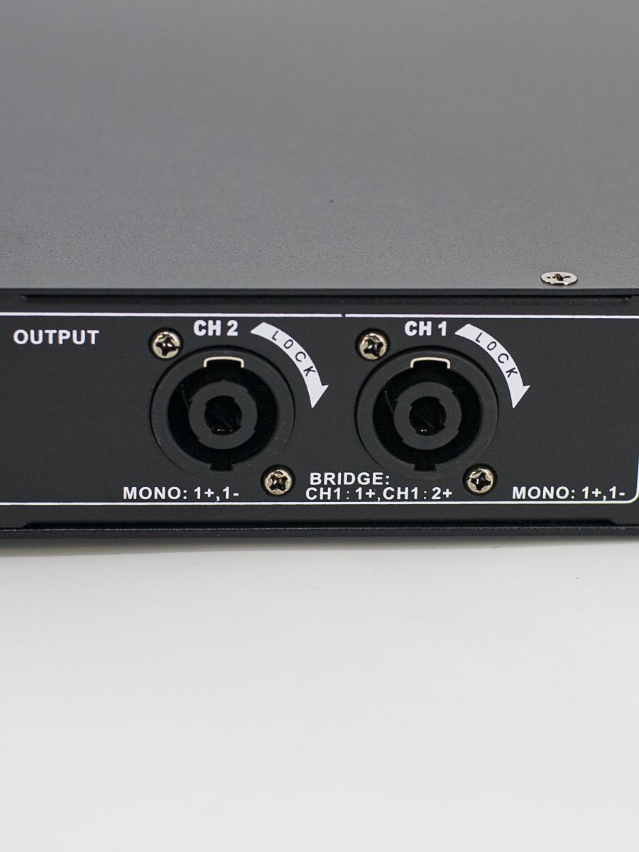 Описание модели: усилитель мощности рэковый Класс: D Мощность RMS/Пик (4 Ом): 2х400 Вт Мощность RMS/Пик (8 Ом): 2х200 Вт Частотный диапазон, Гц: 20-20000 Соотношение сигнал/шум: >105 дБ Входное сопротивление: 20 кОм (балансный), 10 кОм (небалансный) Перекрестные помехи: >75дБ Разъемы: вход XLR, 1В, 20 кОм (балансный), 10 кОм (небалансный) Источник питания: AC 100~240 В, 50/60 Гц Размер (ШxВxГ): 484×375×44 мм Вес: 7.5 кг