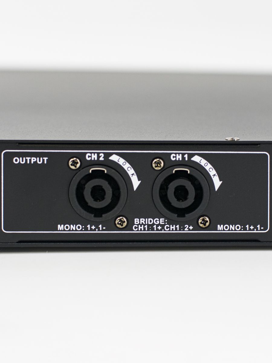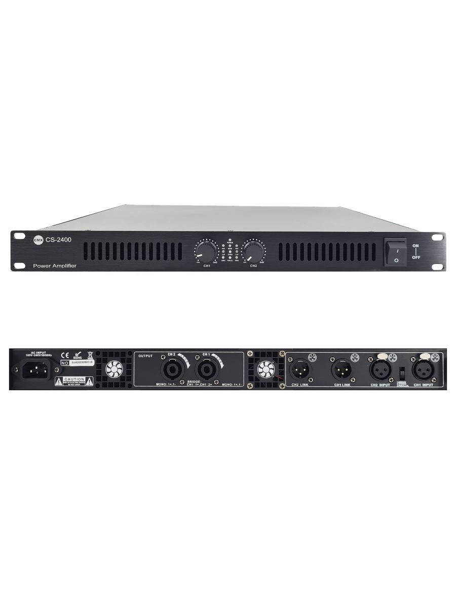 CMX Audio CS-2400 — это мощный двухканальный усилитель класса D, разработанный для профессионального использования в звуковых системах. Устройство отличается высокой эффективностью и надежностью, что делает его идеальным выбором для инсталляций различного масштаба. Функции: • Цифровой усилитель мощности класса D с технологией импульсного питания • Усилитель экологически чистой технологии с эффективностью 85 % • Со специальной силовой схемой ШИМ для обеспечения превосходной системы охлаждения. • 19-дюймовая универсальная стойка высотой 1U. • Поддержка стереовыхода на 8 Ом и 4 Ом • Селектор режима вывода: стерео, параллельный и мостовой. • 2 входа через балансный разъем XLR «папа» • 2 выхода через симметричный гнездовой разъем Speakon • Полная защита, включая зажим, высокую температуру, перегрузку и короткое замыкание.