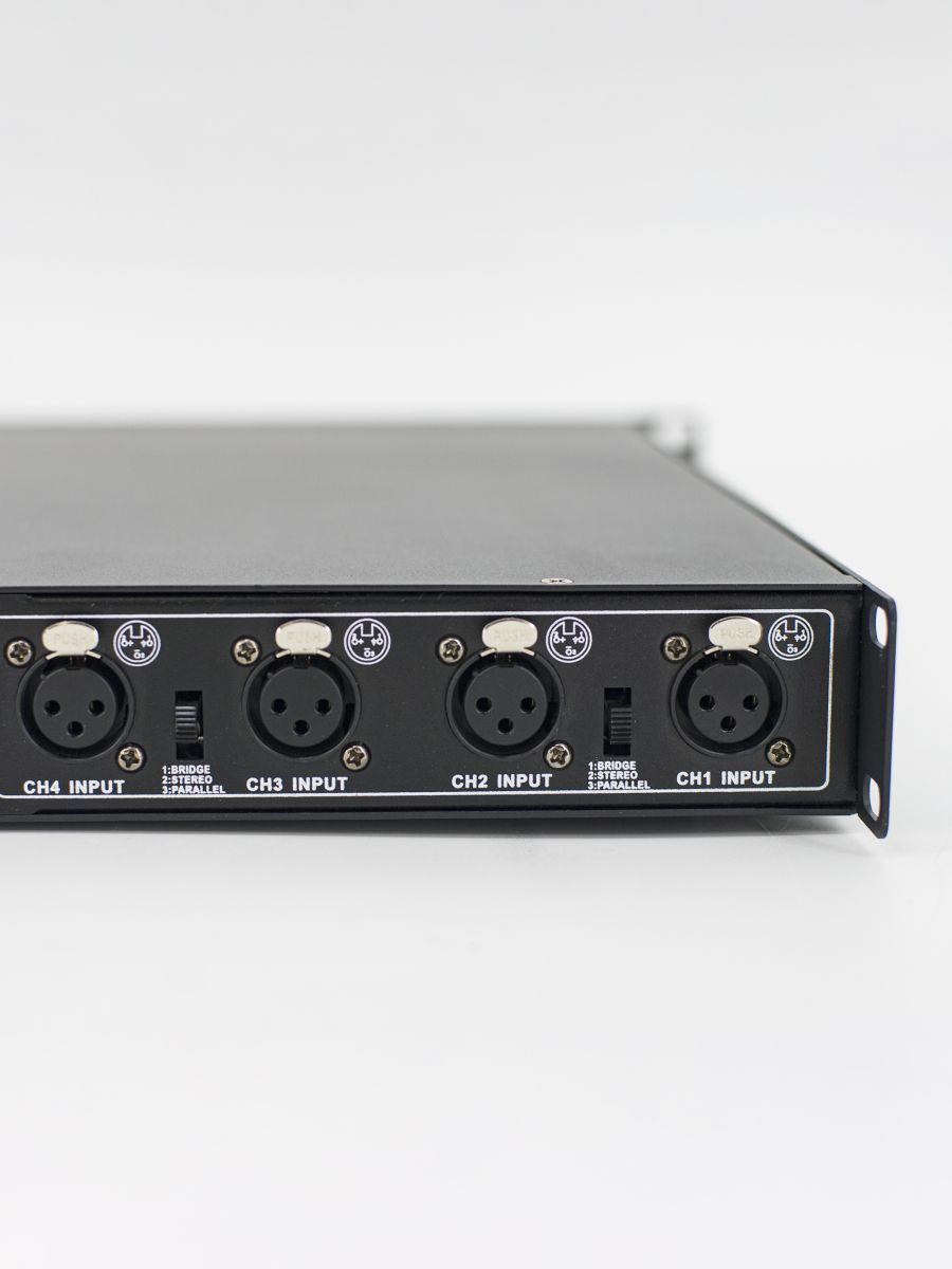 CMX Audio CS-4200 - четырехканальный усилитель мощности предназначен для профессионального аудиоприложения и стационарных звуковых систем. Он использует цифровую технологию класса D, которая помогает усилителю генерировать мощную выходную мощность, сохраняя при этом меньше тепла благодаря высокому КПД до 85%. Усилитель мощности разработан со специальным источником питания ШИМ для обеспечения его исключительной стабильности, меньшего шума и минимального нагрева. Его номинальная мощность составляет 4 × 200 Вт при 8 Ом. Усилитель поддерживает 8 Ом и 4 Ом, а универсальный режим стерео, параллельный и мостовой режимы позволяют ему хорошо работать с линейными динамиками, сабвуферами и профессиональными громкоговорителями. С полной защитой от перегрузки, высокой температуры и короткого замыкания этот усилитель работает в тяжелых рабочих условиях.