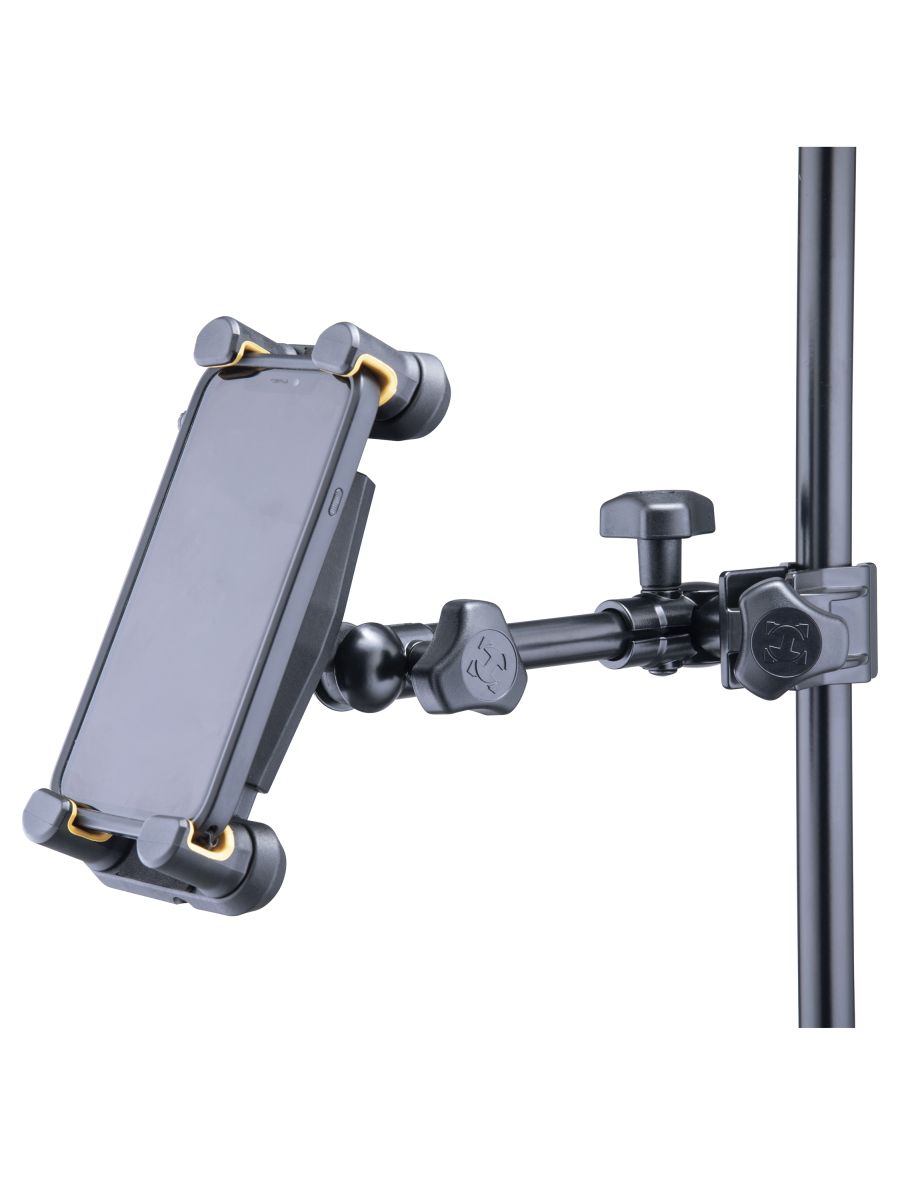 Hercules DG307B – адаптивный держатель для планшета или смартфона 2 в 1 для дома или студии. Особенности: Механизм блокировки TightVice обеспечивает надежную фиксацию устройства. Подходит для телефонов и планшетов размером от 6,1 до 13 дюймов. Держатель удобно крепится к столу, круглым и квадратным трубам, например, подставкам для клавишных, микрофонным стойкам или пюпитрам.