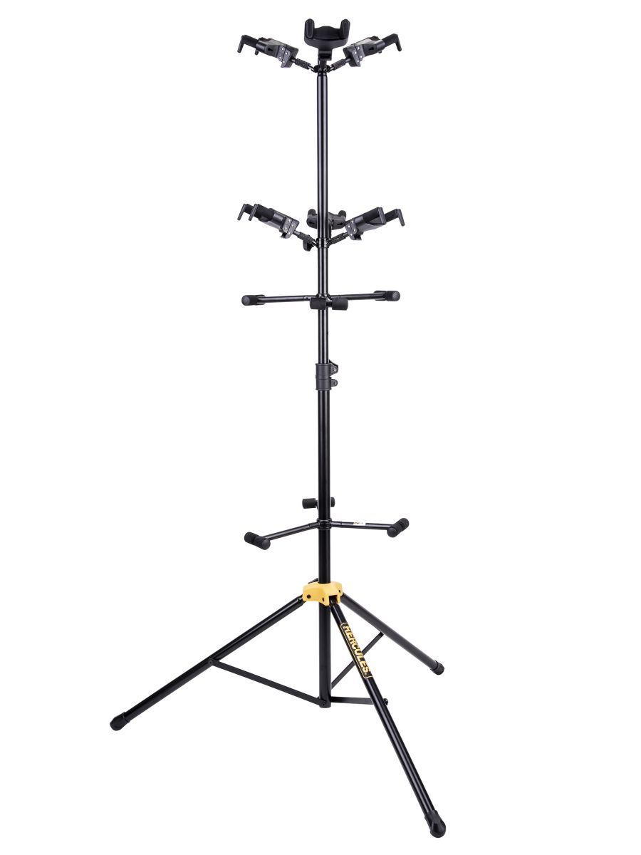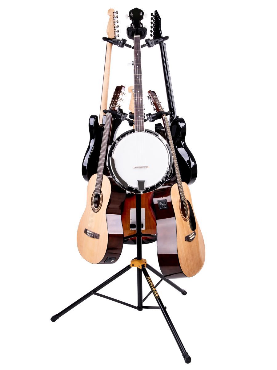 Hercules GS526B Plus – это надежный и качественный демонстрационный гитарный стенд. На подставке можно разместить 6 гитар одновременно. Механизм AGS срабатывает под весом инструмента. Гитары фиксируются мгновенно и надежно. Специально разработанный материал SFF, которым покрыты фиксаторы, защищает инструменты от повреждений. Гитарный стенд Hercules GS526B Plus отличается невероятной прочностью и современным дизайном.