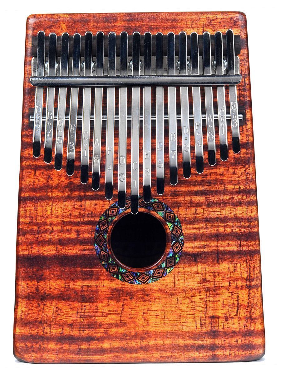 Строй: C Материал: древесина трембези Покрытие: матовое Язычки: 17 Рисунок: графический дизайн Koa Резонаторное отверстие: круглое с орнаментом Звуковые отверстия: 2 на нижней деке В комплекте: руководство пользователя, молоточек, замшевый чехол