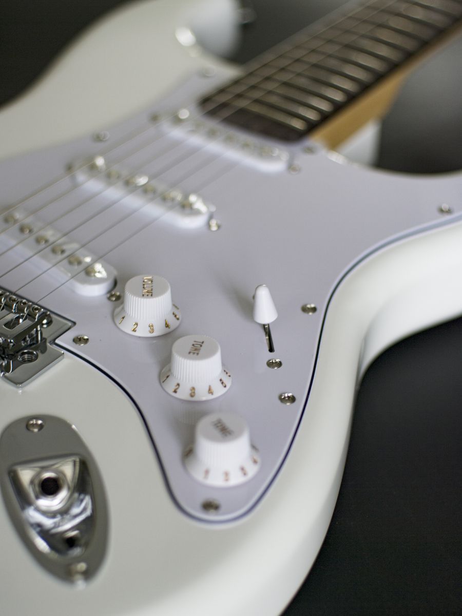 Конструкция / мензура: Stratocaster Мензура: 648 мм Ширина порожка: 42 мм Материал корпуса: липа Гриф / накладка грифа: клен / палисандр Лады: 22 Звукосниматели: 3 Single Coil Контроллеры: 1 громкость, 2 тон, 5-позиционный переключатель Цвет корпуса: белый Аксессуары: чехол Страна-производитель: Китай Вес брутто: 6 кг Длина: 111 см Ширина: 41 см Высота: 12 см