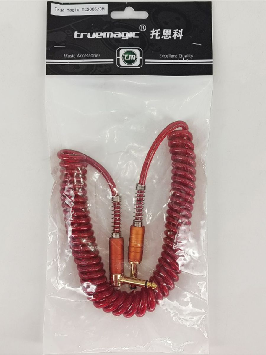 True magic TES005/3M – кабель инструментальный витой Jack 6.3 - Jack 6.3 угловой, моно, золотые штекеры, 3м, 6.0мм, красный.