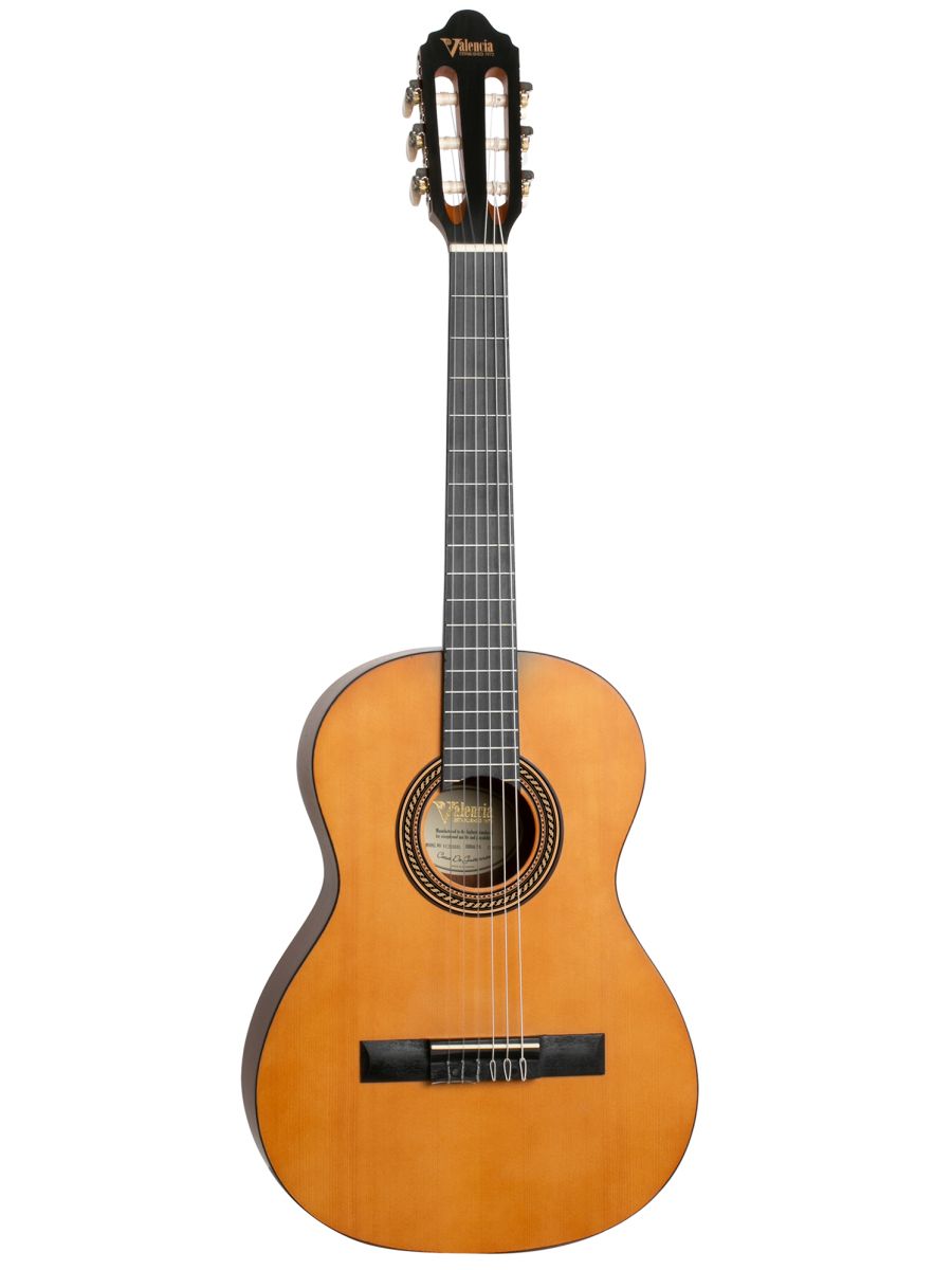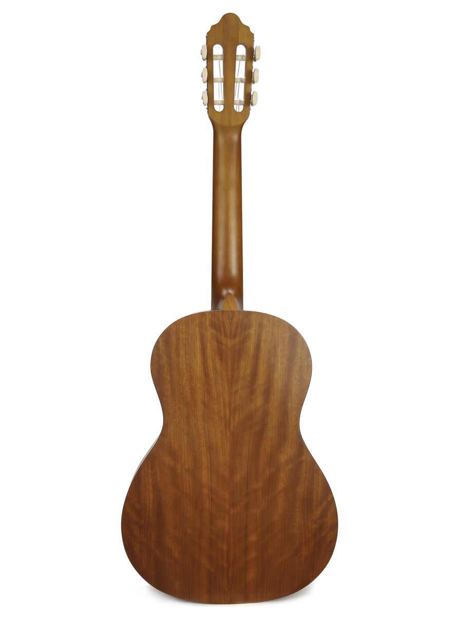 Valencia VC203HL Гитара классическая леворукая 3/4, верхняя дека: ель, нижняя дека и обечайка: нато, узкий 42 мм гриф: махагони, накладка грифа и нижний порожек: махагон, колки: винтажные, никель, цвет натуральный