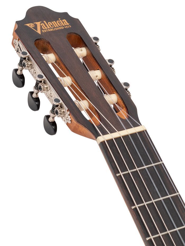 Valencia VC704 Гитара классическая, верхняя дека: цельная ель, нижняя дека и обечайка: махагони, гриф: махагони, накладка грифа и нижний порожек: черное дерево Амара, цвет Natural